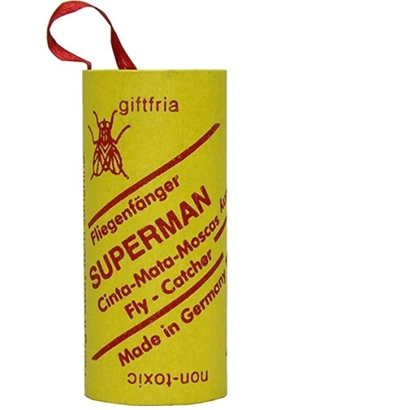 Banda adeziva este eficienta impotriva tantarilor si mustelor si este infasurata pe un tub.